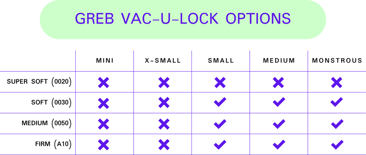 Thinking of adding a double-sided suction cup to your toy? Check the table in the image gallery for help when choosing the appropriate size for your model.