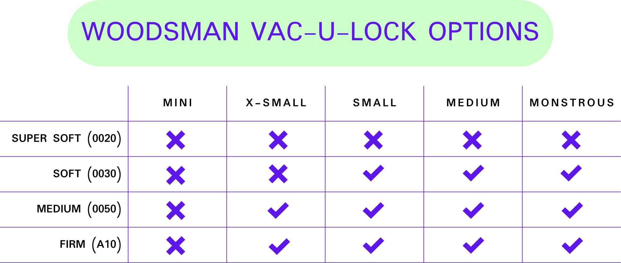 Thinking of adding a double-sided suction cup to your toy? Check the table in the image gallery for help when choosing the appropriate size for your model.